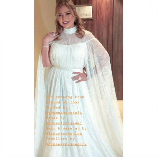 ليلى تألقت خلال الحفل بفستان أبيض شديد الأناقة، أظهرها كالعروس، وهو من توقيع مصمم الأزياء يوسف الجسمي، وأكملت إطلالتها بتسريحة شعر مميزة، وماكياج قوي، وتزينت بمجوهرات ماسية رقيقة من مجوهرات المواردي.