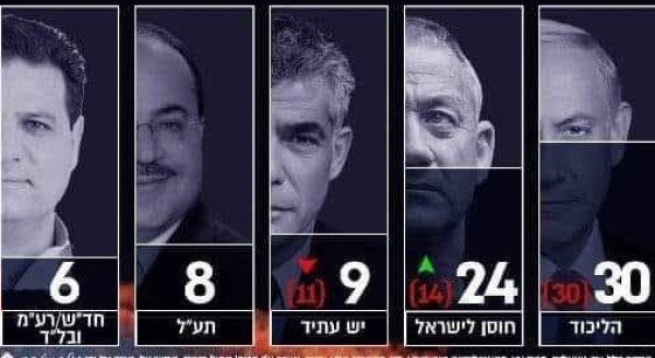 نشرت وسائل الاعلام الإسرائيلية، في الأيام الأخيرة نتائج استطلاعات رأي قامت بها في المعاهد المختلفة وذلك بعد افتتاح بيني غانتس حملته الانتخابية قبل عدة أيام.