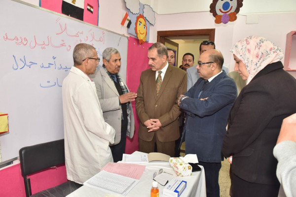 محافظ أسيوط يتفقد أعمال القافلة الطبية المجانية لطلاب ومعلمي مدرسة أحمد جلال