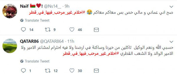 وسرعان مادشن ناشطون قطريون هاشتاج بعنوان #احلام_غير_مرحب_فيها_في_قطر، استنكروا فيه دعوتها لإقامة العرس، مشيدين في نفس الوقت بموقف المعازيم الذي غادروه غيرتهم على وطنهم وقيادته.