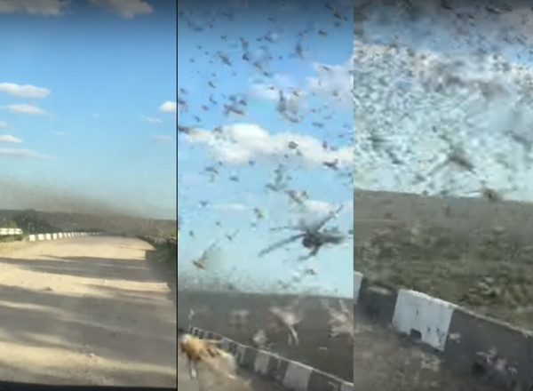صُدم السكان في إحدى المدن الروسية عندما غطت أسراب الجراد السماء. ونشرت قناة "CGTN" مقطع فيديو عبر موقع يوتيوب يُظهر أسراب الجراد تقتحم المكان بينما يحاول السكان التقاط الحشرات وإبعادهم لكنهم فشلوا.