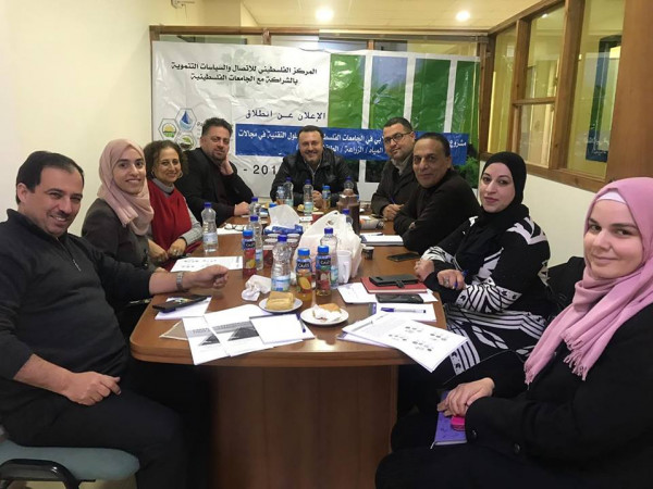 حيث شارك في الجلسة كل من السيد طارق التميمي مديرا لغرفة تجارة الخليل ممثلا عن القطاع الخاص والدكتور رضوان القصراوي رئيس وحدة الإبداع في جامعة القدس ابو ديس والدكتورة مي المغثة عضو المجلس الأعلى للابداع والريادية والسيدة إيمان معالي من وحدة الإبداع والتميز في جامعة بيرزيت والمهندس محمد الدويكات من وحدة الإبداع والريادية في جامعة النجاح والمحامي محمد سلام مدير المشروع والسيدة فداء ابو تركي رئيسة مجلس الحاضنة الأولى لسيدات الأعمال في فلسطين إرادة وجميل الدرباشي رئيس مجلس إدارة المركز الفلسطيني .