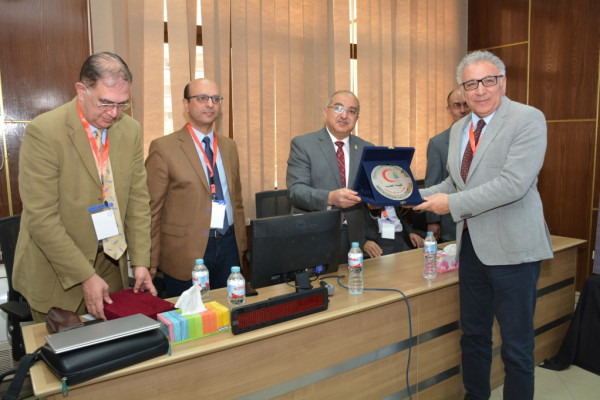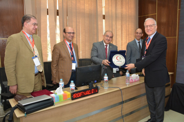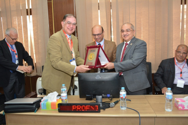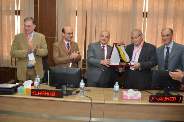 وفى ختام فعاليات الجلسة الافتتاحية للورشة قام الدكتور طارق الجمال بإهداء درع الجامعة للخبراء الأجانب والمصريين تقديراً لمساهمتهم فى الورشة ولتميزهم الطبي المشهود.