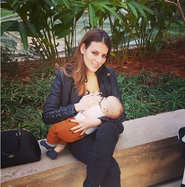 الفنانة التونسية ظهرت في الصور، التي نشرتها على حسابها الخاص على موقع "انستجرام"، وهي ترضع طفلها، وعلقت عليها بقولها: "لا يهم وين بنكون أول ما هذا "البسكوتة" بيجوع في ثانية أكلو بيكون جاهز! هل هناك أجمل من ذلك؟ هل هناك أجمل من الطبيعة، والفطرة التي خلقنا الله عليها؟".