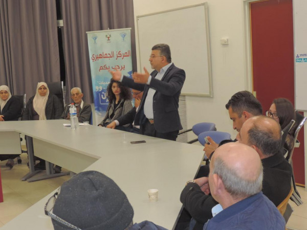 استضاف المركز الجماهيري في أم الفحم كل من د. يوسف جبارين، النائب عن الجبهة في الكنيست، والباحث د. مهند مصطفى، مدير عام مركز مدى الكرمل، في ندوة سياسية وحقوقية هامة لمناقشة قانون القومية العنصري وتداعياته ومخاطره على الجماهير العربية في اسرائيل، وعلى الفلسطينيين عمومًا، وذلك بحضور العشرات من الناشطين من أهالي أم الفحم.