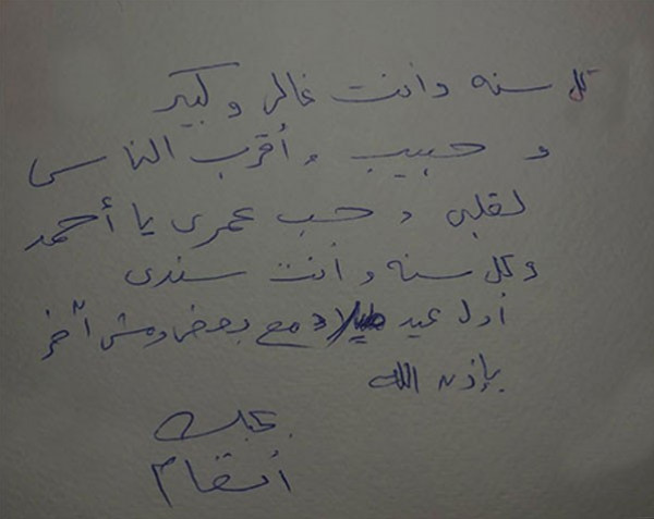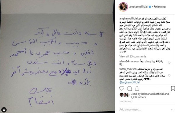 كما نشرت أول رسالة لها بخط يدها احتفالًا بعيد ميلاد زوجها، واعترفت فيها بحبها له عبر صفحتها الشخصية بموقع "إنستجرام"، ووجهت رسالة شكر لسارق الرسالة، لأنه أتاح لها الفرصة للاعتراف بحب زوجها على الملأ.