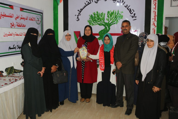 جاء ذلك بحضور كافة الأطر النسوية بمحافظة رفح والعديد من المؤسسات النسوية والأهلية وبحضور عضو المكتب السياسي لفدا ومسؤولة اتحاد العمل النسوي لفدا الرفيقة هدى عليان والرفيق عامر الجعب، عضو المكتب السياسي لفدا والأستاذ عيسي صادق، مسؤول دائرة المؤسسات للعمل المهني وجمعة أبو كوش، أمين سر فدا في محافظة رفح والرفيقة ندى أبو البطيخ مسؤولة العمل النسوي بفدا في المحافظة.