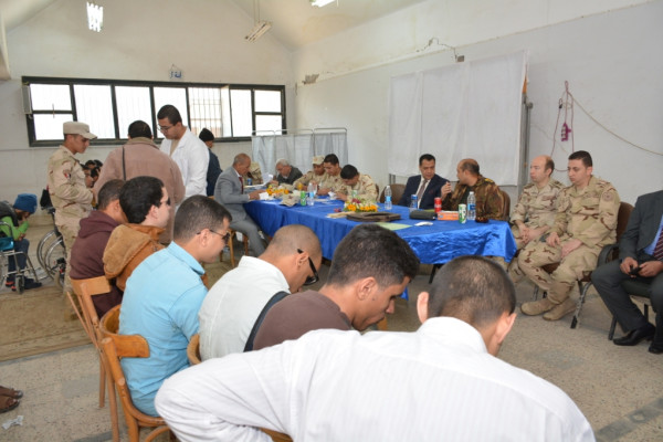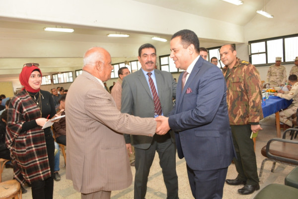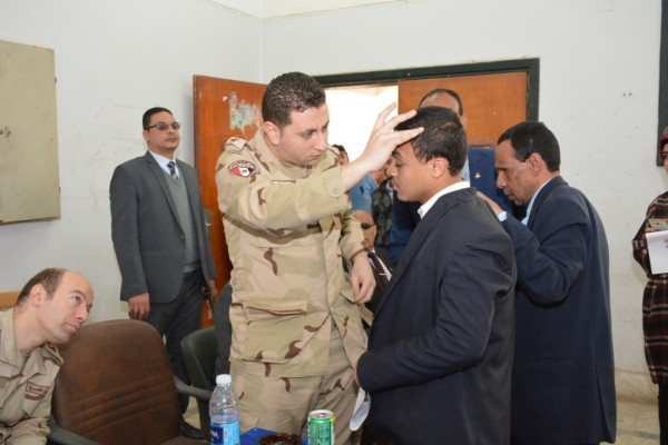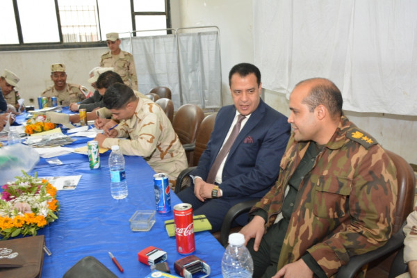جاء ذلك خلال تفقده لمقر اللجنة التجنيدية الطبية و المنعقدة بصالات الامتحانات بجامعة أسيوط وذلك لتوقيع الكشف الطبى على الطلاب من ذوى القدرات الخاصة وتحديد موقفهم من التجنيد ، تحت رعاية الفريق أول محمد زكى وزير الدفاع ، اللواء فهد السيد مساعد مدير إدارة التجنيد و التعبئة ، العميد أركان حرب الالفى الالفى جبر رئيس فرع التجنيد والتطوع ، والعميد حسام الدين مصطفى نائب مدير المنطقة ورئيس اللجنة ، وذلك بحضور العقيد إبراهيم عبد الستار رئيس فرع التجنيد بأسيوط ، الأستاذ محمود رضوان مراقب عام التجنيد والتفتيش بأسيوط ، والأستاذ مصطفى حسن أمين عام الجامعة المساعد ، الأستاذ ماهر عبد الحفيظ مدير عام مكتب الاتصال العسكرى بالجامعة ، هذا إلى جانب فريق طبى مرافق للجنة يتضمن اخصائين " رمد ، جراحة ، عظام " .