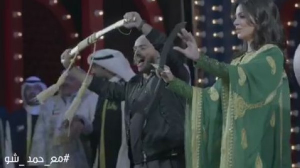 فتتحت الفنانة نادين نجيم حلقتها لبرنامج حمد شو بارتدائها العباءة الكويتية المذهبة ورقصها على انغام فرقة فلوكلورية كويتية الرقص السامري استقبلها فيها جمهورها على مسرح البرنامج.