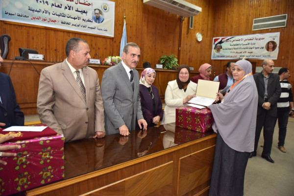 وقد تم تكريم 8 أمهات مثاليات على مستوى مراكز وأحياء المحافظة ضمن مسابقة الأم المثالية والمنطبق عليهن الشروط لعام 2019 ("آمال يعقوب كامل حنا" من مركز القوصية بالمركز الأول على مستوى المحافظة والخامس على مستوى الجمهورية ، و"أمل شكر مرقس عبد الشهيد" ، و"سعاد فؤاد محمود" ، و"سلوى أحمد محمد" ، "نوال عباس رضوان" ، و"فاطمة سيد بخيت" ، و"إلهام حمدان أحمد" ، و"فاتن خليفة دوس") فضلاً عن تكريم أمهات شهيدين للقوات المسلحة وهم ("حميدة شاكر طه حسين" ـ والدة النقيب الشهيد "خالد أسامة" ، و"عفاف سيد علي" ـ والدة المجند الشهيد "فاروق جعفر أحمد") بالإضافة إلى ("زينب محمود ابراهيم" ـ مدير إدارة منفلوط الإجتماعية وإحدى قيادات العمل الإجتماعي المتميزات ، و"صباح سيد محمد شحاته" ـ رائدة اجتماعية متميزة بوحدة الواسطى).