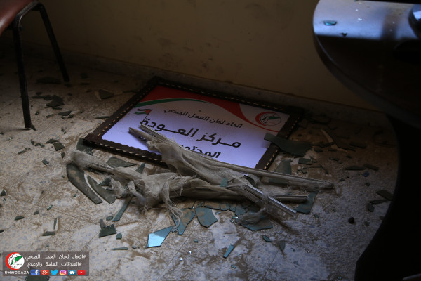 يتعرض قطاع غزة ومنذ مساء أمس الاثنين الموافق 25/3/2019 إلى عدوان إسرائيلي شرس طال جميع مناحي الحياة في قطاع غزة؛ مما أسفر عن أضرار بليغة في المنشآت المدنية في القطاع بما فيها مركزين تابعين لاتحاد لجان العمل الصحي وهم مركز العودة الصحي والمجتمعي في بلدة بيت حانون شمال قطاع غزة الذي يُقدّم خدماته الصحية والمجتمعية لكافة فئات المجتمع ، ويتم تمويل أنشطته من قِبل مجموعة من الشركاء والأصدقاء الدوليين وهي مؤسسات: APS, VIVA SLUD, ALKARAMA، حيث أدّى هذا العدوان إلى توقف تقديم الخدمات والأنشطة المُنفّذة بالمركز، في حين تضرر مركز العودة المجتمعي التابع للاتحاد في مدينة غزة والذي يقع في مُجمّع بادر التنموي الثقافي؛ مما أدّى إلى توقف جميع الأنشطة المُنفّذة في المركز والتي تستهدف فئات المجتمع عامةً، وفئة الأطفال والسيدات خاصة.