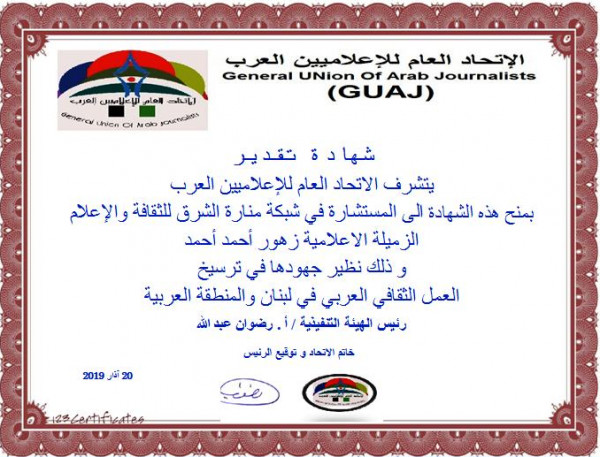 كرم الإتحاد العام للإعلاميين العرب مجموعة من منتسبيه نظير الجهد الذي يقدمه منتسبي الاتحاد العام للإعلاميين العرب في ترسيخ العمل الثقافي في الوطن العربي.