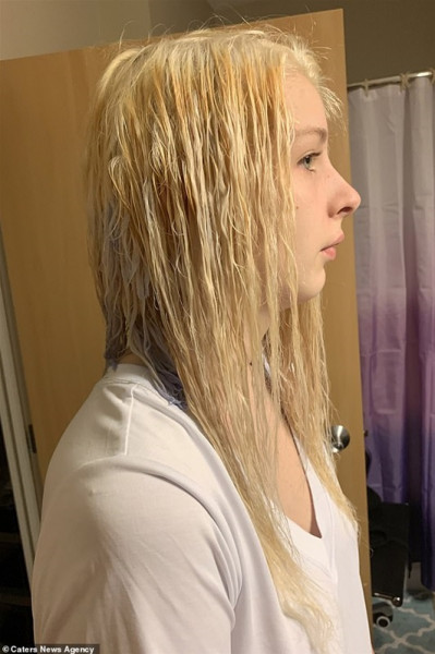 أصيبت مراهقة بالذعر بعد فشل محاولة صبغ شعرها منزليا بمنتج رخيص للشعر.