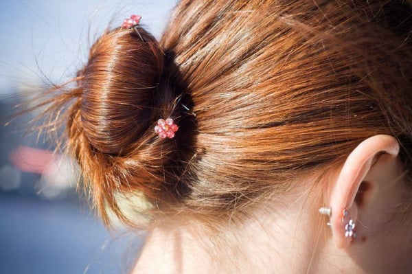 2- قسمي الشعر إلى اتجاهين يمينًا ويسارًا، وتبدأ بتسريح الاتجاه الأيمن فقط عكس اتجاه الشعر من الأسفل إلى الأعلى ثم قومي بتثبيت الاتجاه الأيمن بالبنسة، ويترك من 4 إلى 8 ساعات.