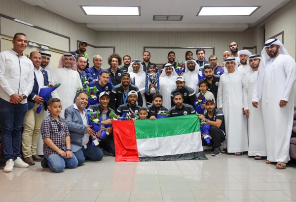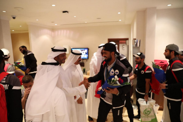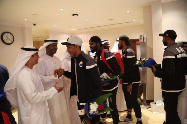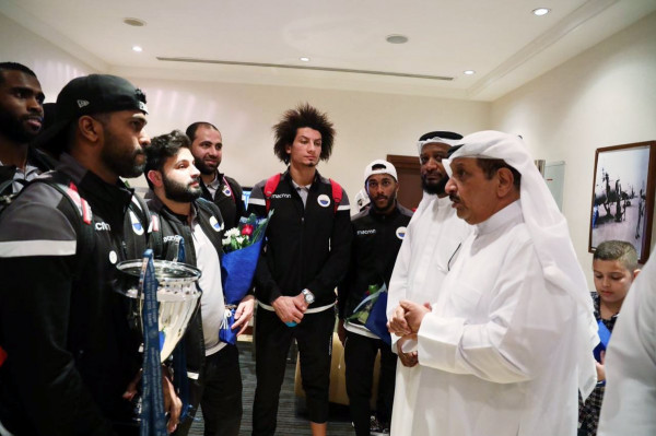 وكان في استقبال الفريق بجانب رئيس مجلس الإدارة، كل من، محسن مصبح، رئيس شركة كرة القدم، ومحمد عبيد الحصان، رئيس إدارة الألعاب الجماعية، وسعيد مطر فيروز، رئيس المركز الإعلامي، وعدد من جماهير ومحبي النادي.