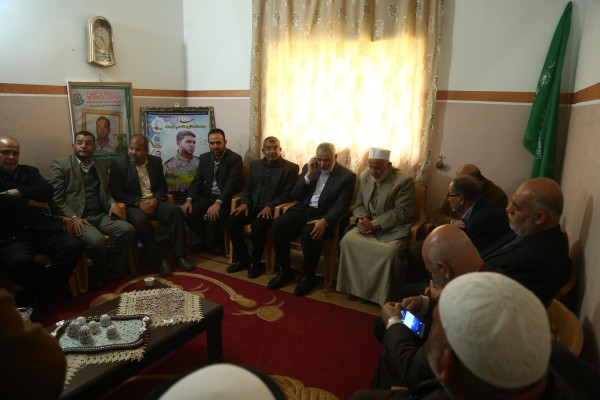 وعبّر هنية عن سعادته بزيارة عوائل شهداء وأسرى محافظة خان يونس، مؤكداً أن دماء الشهداء لن تذهب هدراً، وهي وقود معركة التحرير بإذن الله.