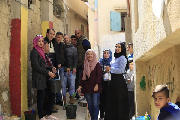 مبادرة شبابية بعنوان "نعم نستطيع" لدهان الأرصفة في مخيم الجلزون