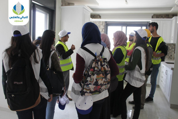 وكان في استقبال الطلبة م.ثابت زيتون، المهندس المشرف على المشروعين، في حين قدم الدكتور معين جوابرة، أستاذ الهندسة المعمارية في جامعة بيرزيت، محاضرة علمية ميدانية للطلبة تضمنت شرحاً تفصيلياً لأهم المبادئ الهندسية المعمارية وتطبيقها العملي. وأشاد الدكتور معين جوابرة، بالتعاون الكبير الذي تبديه شركة النبالي والفارس للعقارت في تسهيل الزيارات التعليمية للطلبة.