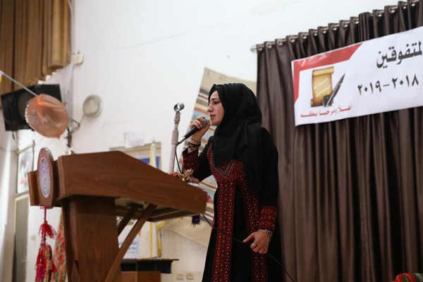 وفي ذات السياق ألقت الطالبة آلاء أبو الفحم كلمة أوائل الطلبة التى هنأت خلالها الطلبة المتفوقين، وأشادت بالجهود التي تبذلها الجامعة في سبيل الارتقاء بمستوى طلبتها، كما قدمت شكرها وتقديرها لأولياء الأمور الذي ساهموا في الوصول بأبنائهم نحو التفوق من خلال ما بذلوه لهم من جهد وعناء وأنفقوا الغالي والنفيس لأجلهم.