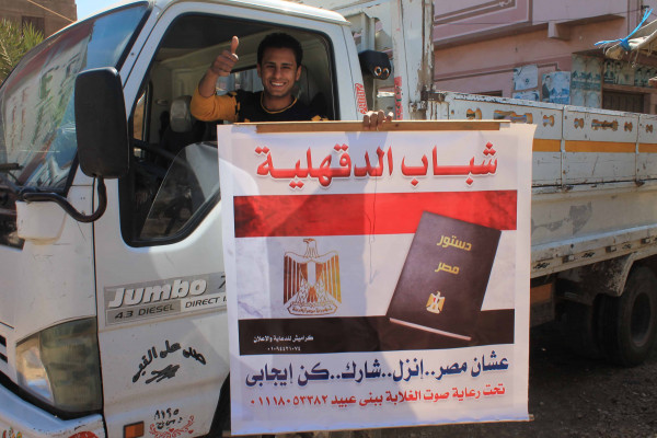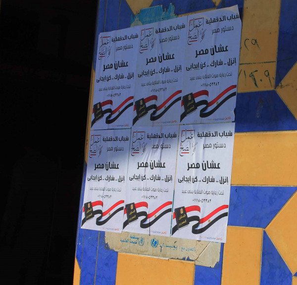 واصل أعضاء حملة حث المواطنين على المشاركة فى الإستفتاء على التعديلات الدستورية تحت شعار " عشان مصر .. إنزل .. شارك .. كن إيجابي " حملتهم بتعليق ملصقات الحملة فى شوارع مركز بنى عبيد وذلك لحث المواطنين على أهمية المشاركة في الإستفتاء على التعديلات الدستورية المزمع طرحها للإستفتاء الشعبي أيام الإثنين والثلاثاء والأربعاء الموافقين 22 و23 و24 من شهر أبريل الجارى حيث تفاعل المواطنين معها ولفتت الحملة إنتباههم وقاموا بالمشاركة فى فاعلياتها.