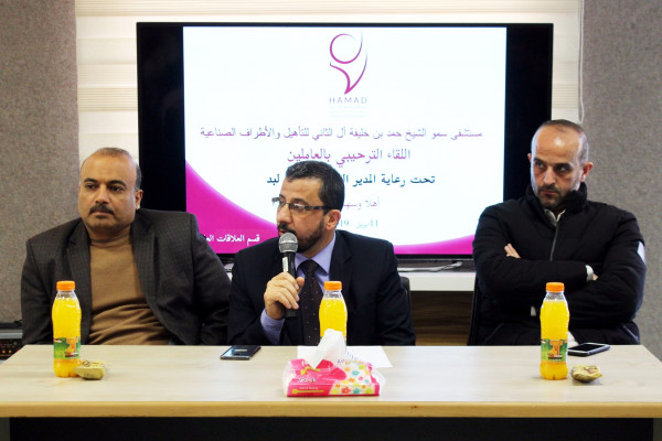 نظم مستشفى حمد بن خليفة آل ثاني للتأهيل والأطراف الصناعية بغزة وتحت رعاية مديرها العام د. رأفت لبد لقاءً ترحيبياً بالعاملين وللوقوف أيضاً على جهوزية الكوادر العاملة استعداداً لتشغيل خدمات المستشفى.