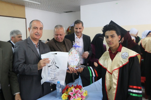 وفي نهاية الحفل شكر الطلبة المحتفى بهم جامعة غزة لتقديرها وتكريمها لهم متمنيين دوام التقدم للجامعة .
