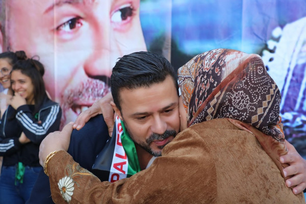 وفي ختام الزيارة شارك الفنان حسن في وقفة تضامنية مع الأسرى في سجون الاحتلال ثم التقى بعدد من أهالي المخيم في مركز جمعية النجدة الاجتماعية.