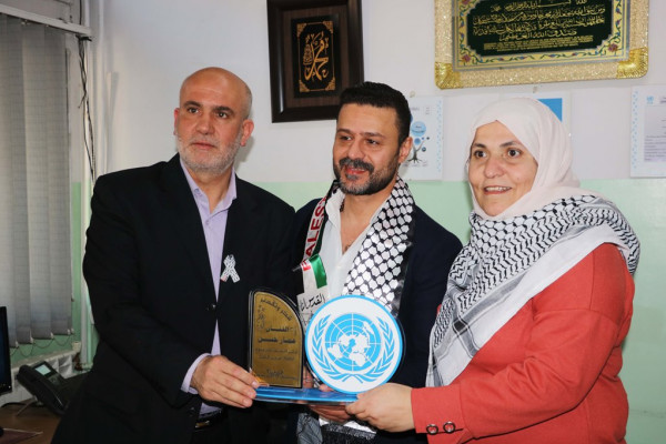 وقدمت مدرستا طبريا والقسطل درعاً تكريمياً للفنان عمار حسن تقديراً لمشاركته أبناء المخيم في اليوم المفتوح.