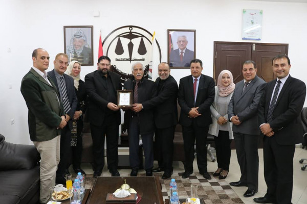 جاء ذلك خلال زيارته ووفد من مدراء المحافظة لمقر نقابة المحامين في مدينة غزة، حيث كان في استقباله المحامي عبد العزيز الغلاييني نائب نقيب المحامين وأعضاء مجلس النقابة في المحافظات الجنوبية.
