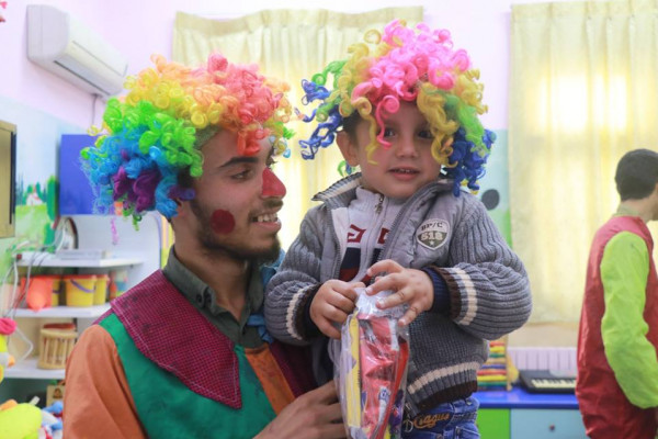 وإنطلقت الفعاليات بحضور المدير التنفيذي للجمعية حسام أبوربيع والأخصائي النفسي بلال البايض ومن العلاقات العامة وسام المدهون بالإضافة لفريق من المهرجين والمتطوعين.