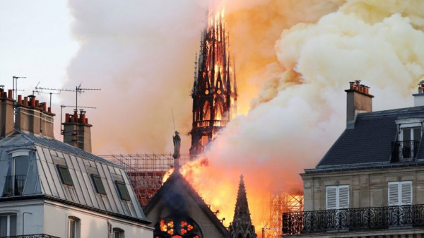 يُذكر أن كاتدرائية "نوتردام" التاريخية، تعرضت لحريق هائل يوم الإثنين، وحاول نحو 500 رجل إطفاء إخماد الحريق، لعدة ساعات، قبل أن يتمكنوا من السيطرة عليه جزئيًا صباح يوم الثلاثاء، تحت أنظار آلاف الفرنسيين والسياح الذين راقبوا المشهد بحزن شديد.