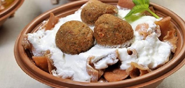 7- أضيفي الفلافل وصلصة اللبن الزبادي وزيني بالبقدونس والمكسرات والرمان.