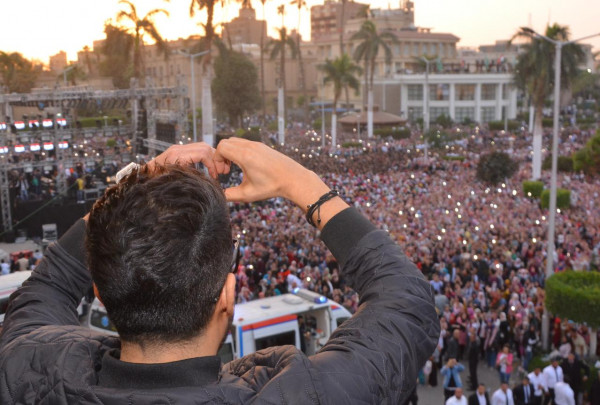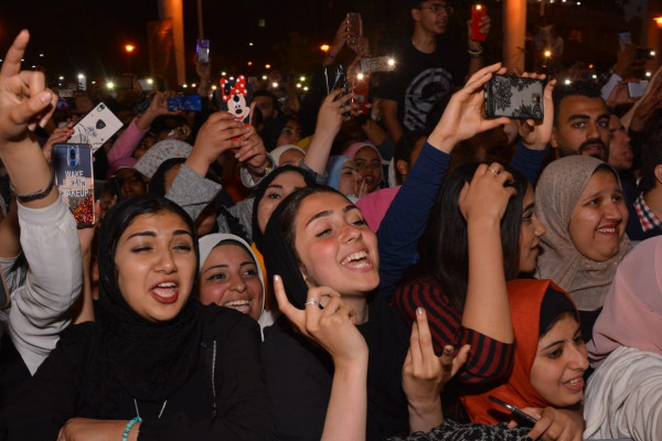 وبمجرد صعود حماقي علي خشبة المسرح مرددا لأغنية "نفسي ابقي جنبو" ضجت ساحة جامعة القاهرة بهتافات وصيحات الإستقبال التي امتد دويها المناطق المحيطة بالجامعة في الدقي والمهندسين وميدان الجيزة.