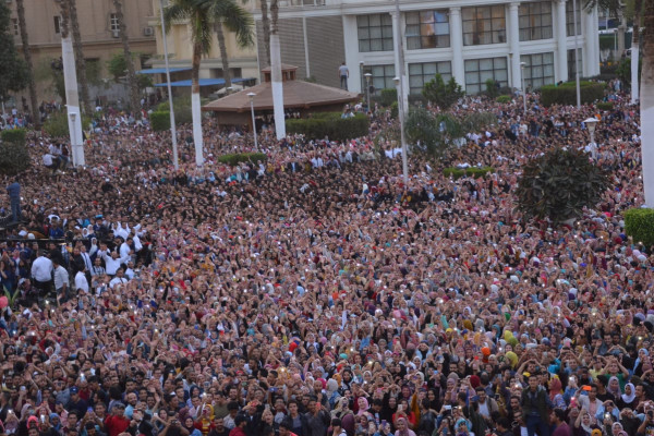 شهد الحفل حشودا غير مسبقة من الطلاب من الجنسين بكافة الطرق المؤدية لمسرح الحفل ممن حملوا لافتات بعبارات المودة والحب لإستقبال حماقي.