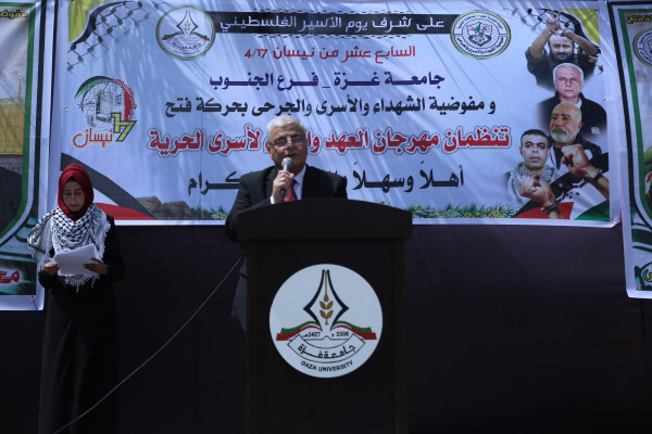 أحيت جامعة غزة – فرع الجنوب، ذكرى يوم الأسير الفلسطيني الذي يصادف السابع عشر من شهر نيسان من كل عام، وذلك خلال فعالية نظمتها بالتعاون مع مفوضية الشهداء والأسرى والجرحى، في فرع الجامعة بمحافظة خان يونس، بحضور