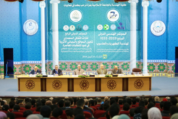 وجرى عقد أعمال الجلسة الافتتاحية للمؤتمرين في قاعة المؤتمرات الكبرى بمركز المؤتمرات في الجامعة، بحضور كلًا من: الأستاذ الدكتور نصر الدين المزيني –رئيس مجلس أمناء الجامعة، والأستاذ الدكتور ناصر فرحات –رئيس الجامعة الإسلامية، والدكتور جودت أبو طه –رئيس اللجنة التحضيرية للمؤتمر الدولي السابع 2019- IEEE لهندسة الكهرباء والحاسوب، وجمع كبير من أعضاء هيئة التدريس والطلبة بكلية الهندسة.