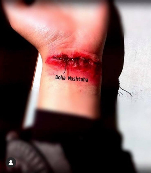 الفتاة ضحى مشتهي 21 عامًا، فنانة غزية تدرس التصميم الداخلي والديكور في الكلية الجامعية للعلوم التطبيقية، قالت : "اكتشفت موهبتي بموقف لا ينسى حيث كان لدى مشروع نهائي حيث يجب تسليمه بعد أسبوع مع الرسم والأفكار تذكرت أني شاهدت فيديو وأنا بعمر 15عاما عن الخدع السينمائية فبدأت ضحى ب تنفيذها للمكياج السينمائي عام 2016".