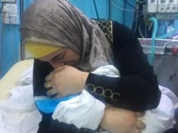 ونعت والدة الطفل، رضيعها بحرقة بالغة، قائلة "يا حرقة قلبي عليك يا أمي .. رح أشتاقلك يا طير من طيور الجنة، سريرك فاضي يا قلب أمك وأبوك وجدك، ريحته معطرة بريح المسك".