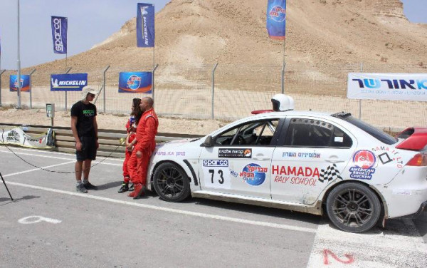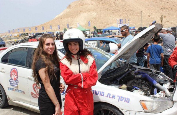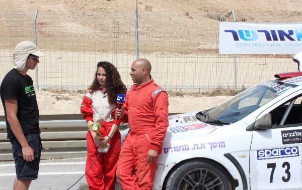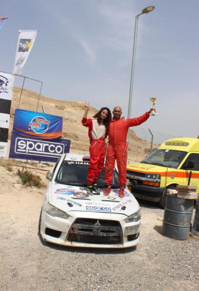 الفتاة ماريا صرصور أول بطلة سباق رالي قسماوية بجانب بطل الرالي حمادة عودة
