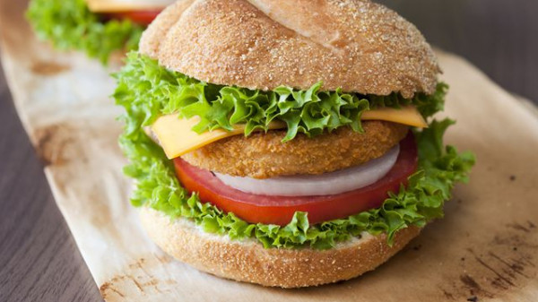 9- قدّمي أقراص البرغر داخل قطعة من خبز البرغر مع الخضار بحسب رغبتك مثل الطماطم والخس والبصل.