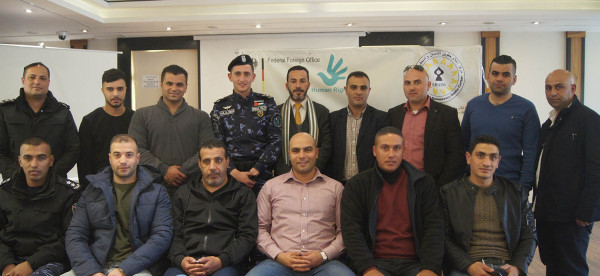 اختتم مركز إعلام حقوق الإنسان والديمقراطية "شمس"دورة تدريبية حول "الحق في التجمع السلمي في القوانين الوطنية والمعاهدات والاتفاقيات الدولية"، شارك فيها أفراد من منتسبي الأجهزة الأمنية الفلسطينية والتي تمثلت بالشرطة، الأمن الوطني، الاستخبارات العسكرية، والأمن الوقائي، وذلك بدعم من وزارة الخارجية الألمانية .