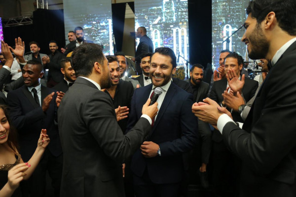 حضر حماقي بصحبة مدير أعماله حمدي بدر وحرص في بداية فقرته على تهنئة العريس الذي يعتبره بمثابة أخ مقرب ثم طالب الجميع بتحية العروسين ونجوم كرة القدم الحضور منهم أحمد شوبير وكابتن مدحت شلبي وطارق يحي وشيكابلا وابراهيم سعيد والإعلامي محمد عباس وعبد الله السعيد، ومحمود كهرباء، وأحمد السيد، وإبراهيم سعيد، وعمر جابر وأحمد حسن الذي شاركه دويتو "واحدة واحدة " .