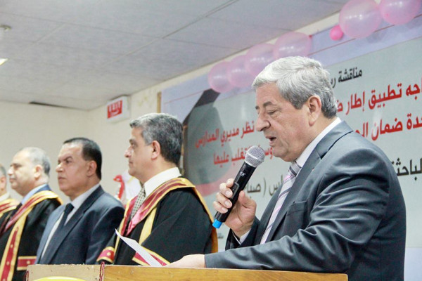 على تحقيق المساهمة في تطوير المجتمع الفلسطيني والارتقاء بجودة التعليم العالي بشكل عام، متمنياً للباحثة التوفيق.