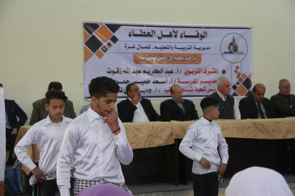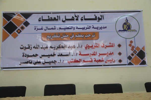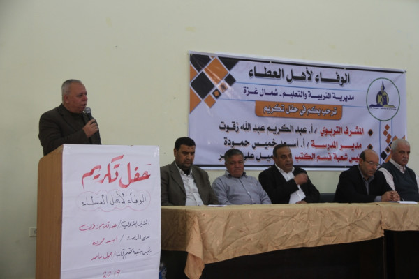 وفي كلمته أشاد أ. أبو حصيرة بالمحتفى بهم، مشيدا بعطائهم وحرصهم على المسيرة التعليمية.