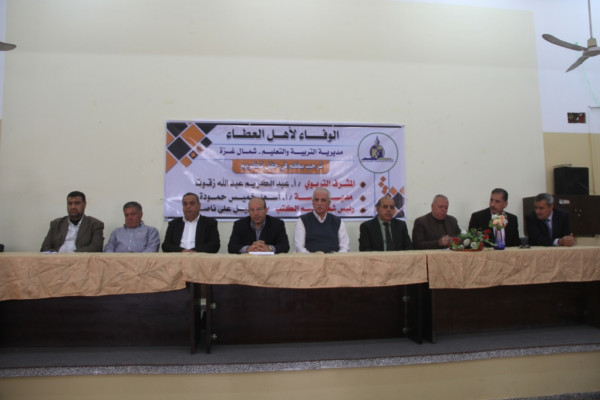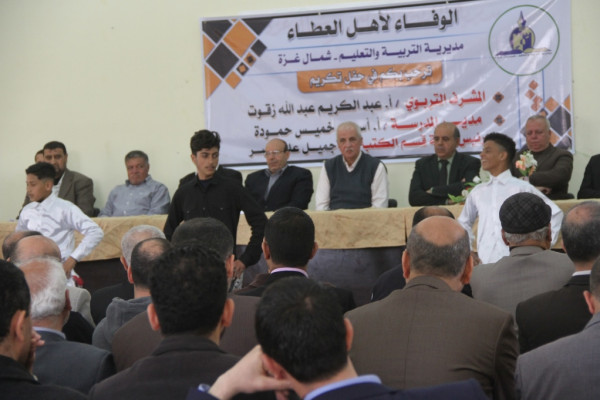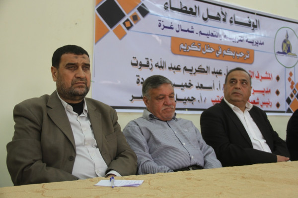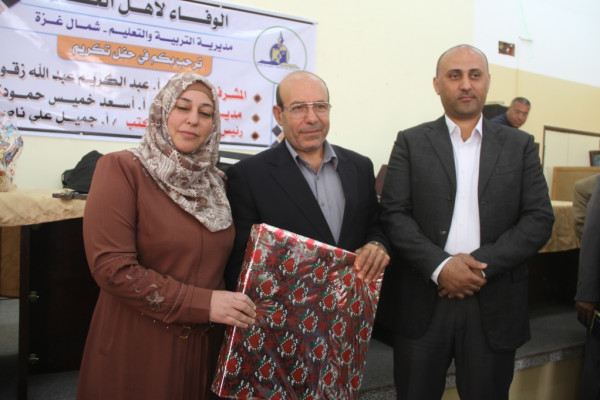 كرّمت مديرية التربية والتعليم في شمال غزة، ثلاثة من كوادرها التربويين المتقاعدين، في حفل بهيج، حضره العشرات من الكوادر التربوية والتعليمية من المديرية ووزارة التربية والتعليم العالي، إلى جانب ذوي المكرمين المحتفى بهم.