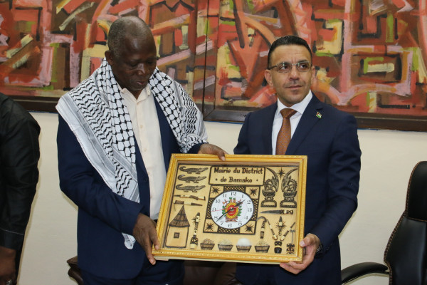 تعبيرا عن العلاقات المتميزة بين الشعبين المالي والفلسطيني وانطلاقا من العلاقات الاخوية المتميزة القائمة بين جمهورية مالي ودولة فلسطين المحتلة ،ابرم محافظ القدس عدنان غيث ونائب محافظ باماكو ابراهيم جوني في مقر محافظة باماكو اتفاقية توأمة اعلنتا فيها عن الاخوة الدائمة امام التاريخ وحصول كل منهما وضعا متميزا للتعاون في مختلف المجالات لما فيه خير مواطني المدينتين وبحضور سفير دولة فلسطين لدى جمهورية مالي هادي شبلي وممثل منظمة التعاون الاسلامي لدى فلسطين احمد الرويضي