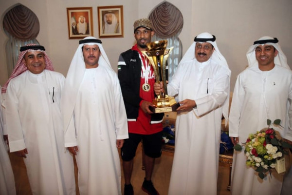بعد حصوله على كأس بطولة الأندية الخليجية الأبطال الـ 39 لكرة السلة للمرة الثانية على التوالي في تاريخ النادي بالعلامة الكاملة، بعدما تغلب الشارقة على المنامة البحريني، منظم البطولة وصاحب الأرض والجمهور، في المباراة النهائية بنتيجة 82 – 74.