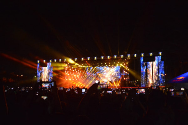 صعد الهضبة على خشبة المسرح مرددا لأغنية "الليلة" وسط عاصفة من هتافات وصيحات الإعجاب بعدها حرص على تحية الجمهور لحفاوة الإستقبال الضخم، ثم انطلق ليقدم اغانى " قمرين" ،"وياك" ،"يتعلموا" ،"العالم الله" ،"لو عشقانى" ،"نور العين" ،"ليلى نهارى" ،"راجعين"، بالاضافة الى من مقطع اغنية "قال فاكرينك" ، وغيرها ممن طالب بها المعحبين.