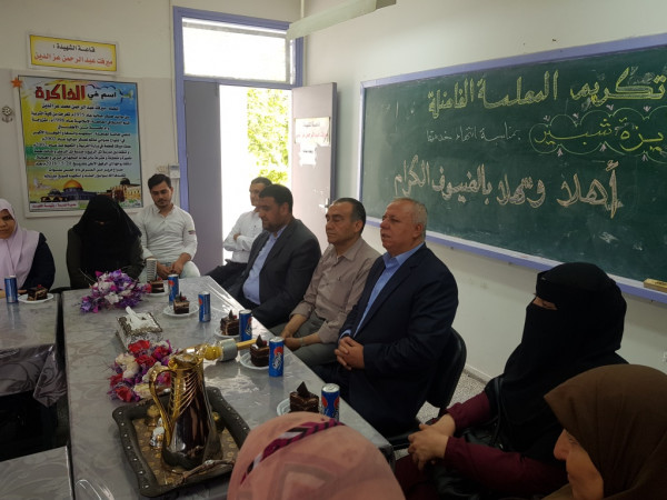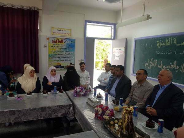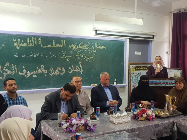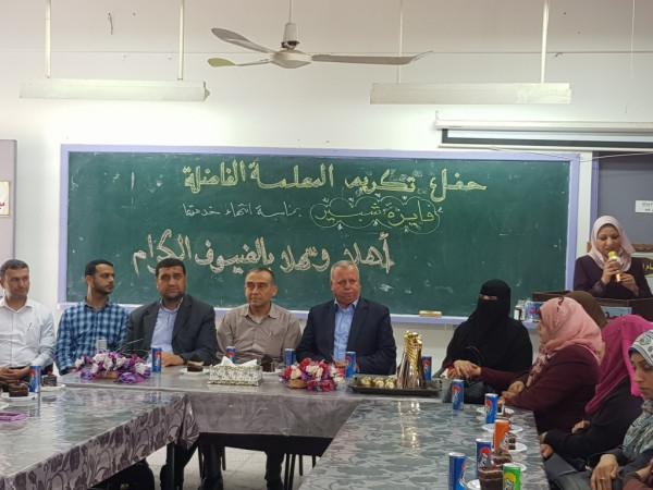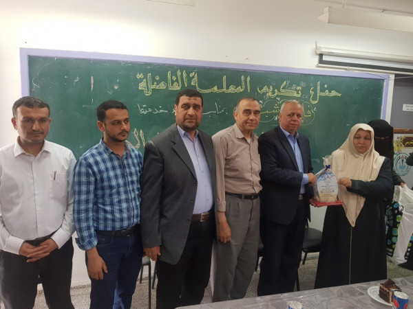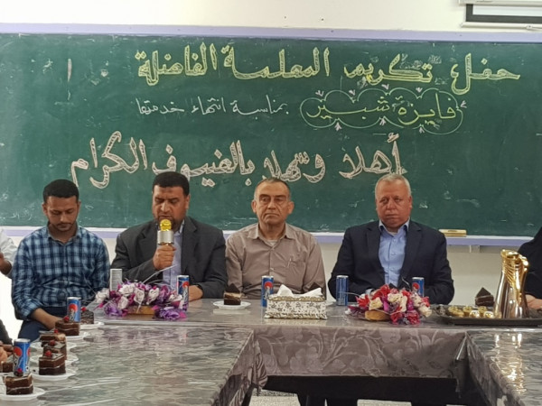 و في كلمته أشاد أ. ابو حصيرة بالرسالة السامية التي قدمتها المعلمة المحتفى بها، على مدار سنوات خدمتها الحافلة بالتضحية و البذل و العطاء، والعمل في أصعب الظروف في ظل انقطاع و تأخر و تقليص الرواتب.