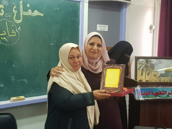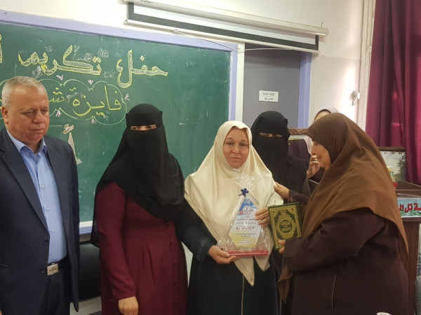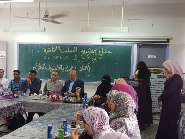 وفي الختام قدم مدير التعليم درع التقدير للمعلمة المحتفى بها، كما قام ممثل النقابة بإهدائها درع التقدير.